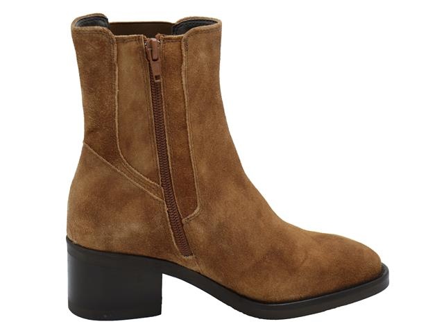 PiediNudi hippe en trendy dames enkellaars. Dit korte laarsje van PiediNudi heeft als modelnaam Zofia 03.08 en het artikelnummer is 2938-03.08. De kleur is biscuit brown oftewel een cognac in het suede leer. De laars heeft een ritssluiting aan de binnenzijde en een elastiek aan de buitenzijde voor een trendy loop. De laars heeft daarnaast een blokhak van 4cm. De voering is van velours materiaal met een uitneembaar voetbed. De wijdtemaat is H, dit betekend dat de schoen geschikt is voor smallere tot bredere voeten.