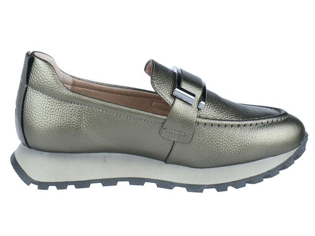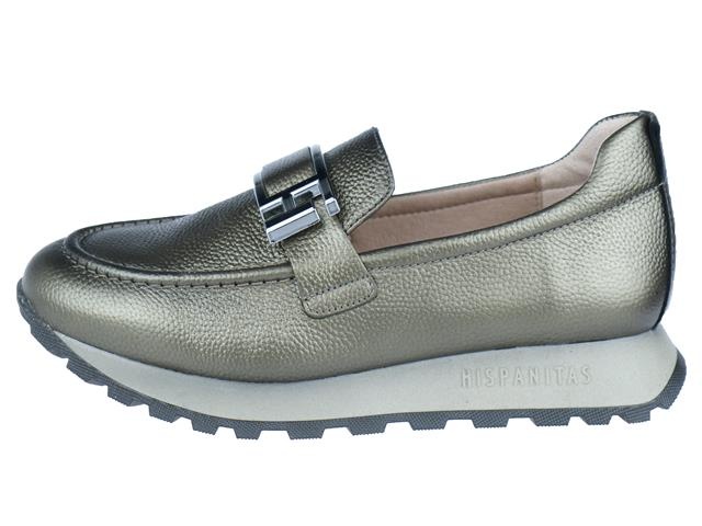 Hispanitas trendy en comfortabele dames instapper. Deze instapper van Hispanitas heeft als modelnaam Loira en het artikelnummer is: HI243621. De kleur is basalt oftewel goud/brons in het leer met een trendy buckle op de wreef. De zool is een sportieve runnerzool voor extra draaggemak. De voering is van leer met een leder uitneembaar voetbed.