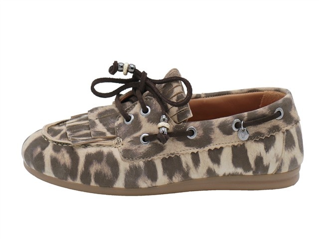 Via Vai hippe en trendy dames mocassin. Deze instapper van Via Vai heeft als modelnaam June Loua en het artikelnummer is: 62374-03-315. Deze luipaardprint mocassins zijn precies wat je zoekt. Dit model is een klassieke mocassin-vorm met een afgeronde neus en een flexibele, lichtbruine zool gemaakt van comfortabel rubber. De opvallende veterdetails rondom de zijkant geven dat authentieke bootschoen accent, terwijl de franjes op de wreef zorgen voor een speels en nonchalant effect. En die sierlijke strik met decoratieve kraaltjes? Die maken June Loua helemaal af!