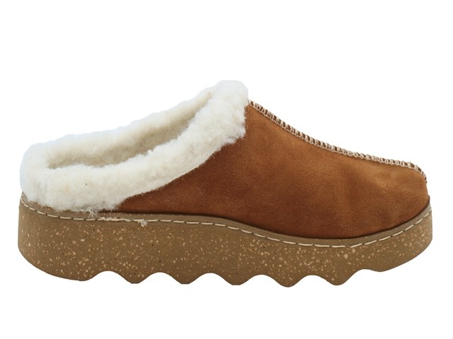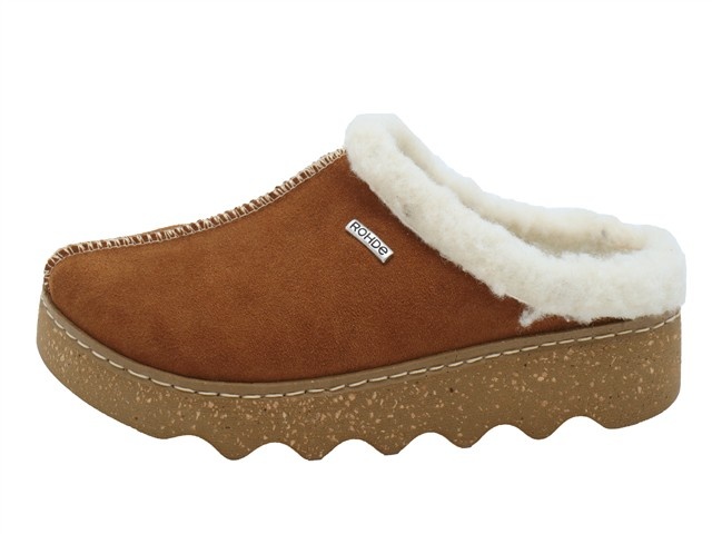 Rohde hippe en trendy dames slipper. Deze huisschoen / pantoffel van Rohde heeft een dikke rubberen lichtgewicht loopzool voor extra draagcomfort en zodat je er ook mee naar buiten kunt. De modelnaam is Foggia en het artikelnummer is: 6125-76. De kleur is Cuoio oftewel cognac en het materiaal is velour/suede. De voering is warm gevoerd en de zool is 3,5cm dik. Daarnaast heeft deze slipper een uitneembaar voetbed.