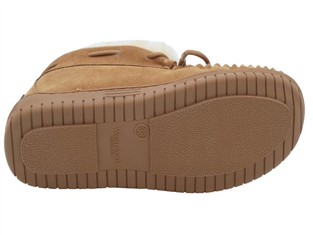 Warmbat comfortabele en warme dames pantoffel. Deze pantoffel van Warmbat heeft als modelnaam Bunya en het artikelnummer is: BNY341025. Deze damespantoffels zijn ideaal voor het dragen in en om het huis. De voering van 100% Merino schapenwol uit Australië wat zorgt voor warme voeten in de winter en koele voeten in de zomer. De wol beschikt over een zachte en fijne structuur die van nature ventilerend, isolerend en aangenaam is. De pantoffels werken als een natuurlijke thermostaat voor jouw voeten door de ademende vezels. Heerlijk om deze pantoffels na een lange werkdag aan te trekken! De pantoffels zijn verder afgewerkt met hoogwaardig cognac suede. Daarmee zijn deze pantoffels niet alleen bedoeld voor het gemak, maar straalt het ook een enorme kwaliteit en luxe uit. En dat niet alleen; de zool is gemaakt van rubber en EVA (Ethyleen-vinylacetaat). Die combinatie maakt de zool sterk en is daardoor slijtvast. Bovendien zorgt de structuur ervoor dat je niet uitglijdt!
