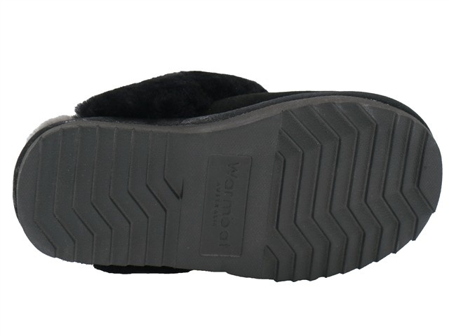 Warmbat comfortabele en warme dames pantoffel. Deze slipper van Warmbat heeft als modelnaam Flurry en het artikelnummer is: FLS321009 en de kleur is black. Deze damesslippers zijn ideaal voor het dragen in en om het huis. De voering van 100% Merino schapenwol uit Australië wat zorgt voor warme voeten in de winter en koele voeten in de zomer. De wol beschikt over een zachte en fijne structuur die van nature ventilerend, isolerend en aangenaam is. De pantoffels werken als een natuurlijke thermostaat voor jouw voeten door de ademende vezels. Deze hippe, comfy en tijdloze pantoffel is een aanwinst voor je garderobe. Verder zijn de damespantoffels afgewerkt met de fluwelen stof suede. Zo voelen de pantoffels aan de buitenkant zacht en glad aan en stralen ze luxe uit. De zolen van de pantoffels zijn gemaakt van een combinatie van rubber en EVA (Ethyleen-vinylacetaat). Dit laatste is een slijtvaste kunststof die de pantoffels beschermt tegen kou en schokken. Het rubberen element in de zolen is zeer licht en slipvast en zorgt voor extra stevigheid en grip aan de onderkant van je voet.