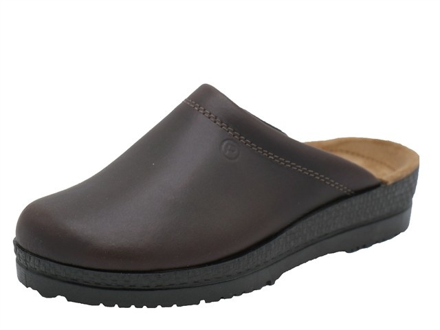 Rohde heren pantoffel. Deze huisslipper van Rohde heeft het artikelnummer: 1515-71. De slipper is espresso bruin van kleur in het leer. De voering is van leer met een leren voetbed. De zool is een rubberen zool zodat de slippers ook gemakkelijk buitenshuis gedragen kunnen worden.