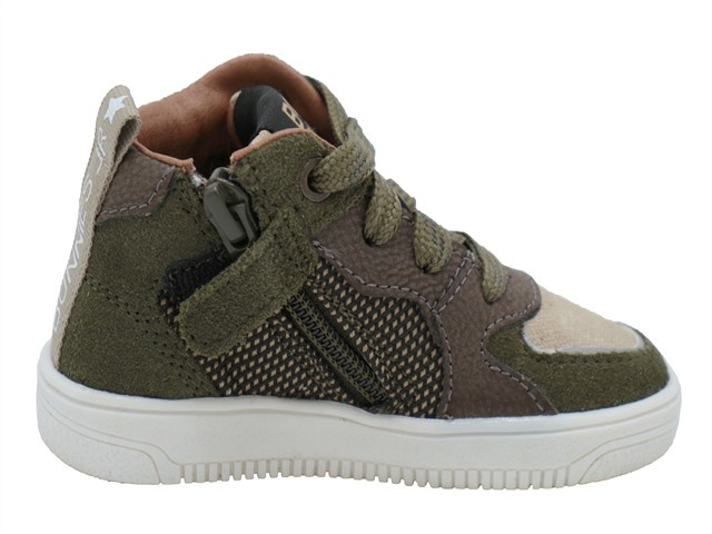 Bunnies Jr. stoere en comfortabele jongens babyschoen. Dit comfortabele babyschoentje van Bunnies Jr. heeft als modelnaam Moos Mellow en het artikelnummer is: 225656-469. Dit model is perfect voor de kindjes die hun eerste stapjes zelfstandig zetten. Deze schoen maakt deel uit van de populaire "Flex Collectie" speciaal ontwikkeld om jonge voetjes optimaal te ondersteunen tijdens het zelfstandig leren lopen. De zool biedt optimale ondersteuning en bewegingsvrijheid. De kleur is army green oftewel groen in het leer combi. De schoen heeft naast de vetersluiting ook een ritssluiting aan de binnenzijde zodat je de schoenen gemakkelijk aan en uit kunt trekken. De voering is van leer met een leder uitneembaar voetbed.