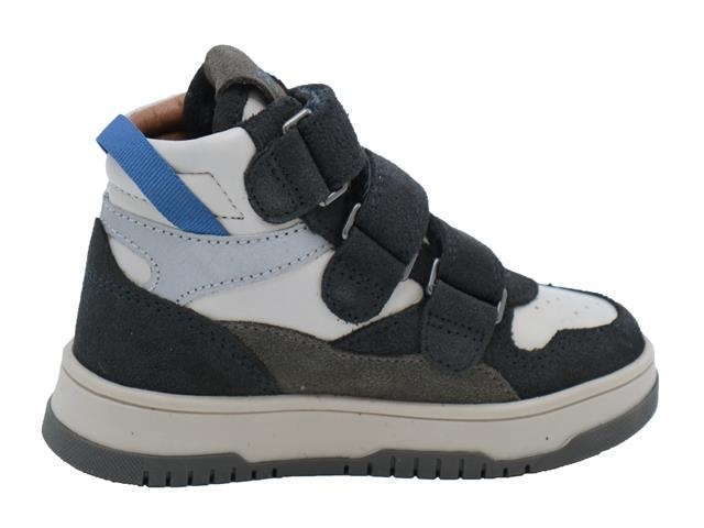 Bunnies Jr. stoere en comfortabele halfhoge jongens sneaker. Deze halfhoge klittenbandschoen van Bunnies Jr. heet als modelnaam Benjamin Baas en het artikelnummer is: 225991-429. De kleur is dark blue oftewel donkerblauw gecombineerd met grijs en ecru met een reflectie accent. Het materiaal is leer in combinatie met suede. De voering is van leer met een leder uitneembaar voetbed.