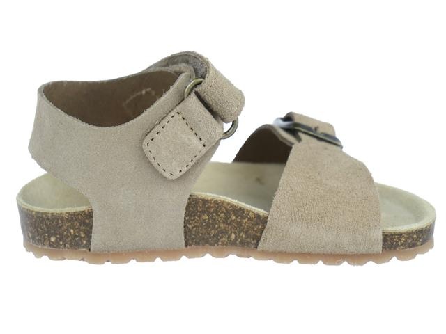 Bunnies JR. stoere en trendy jongens sandaal. Deze sandaal van Bunnies JR heeft als modelnaam Ben Beach (art. nr 225416-408). Met de Ben Beach jongenssandalen is jouw (b)engel klaar voor de zon. De sandalen zijn gemaakt voor kindjes die al goed zelfstandig kunnen lopen. De taupekleurige jongenssandalen hebben twee verschillende sluitingen: een klittenbandsluiting bij de enkel en een gespsluiting op de voet. De sluitingen zijn eenvoudig te verstellen, zodat ze goed aansluiten op de voetjes van je kleine man. De jongenssandalen hebben een voorgevormd voetbed waardoor ze lekker zitten. De kurk met rubberen zool is flexibel en beweegt met de loopbewegingen mee, waardoor de voet goed kan afwikkelen.