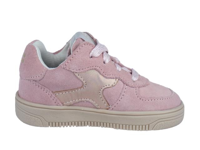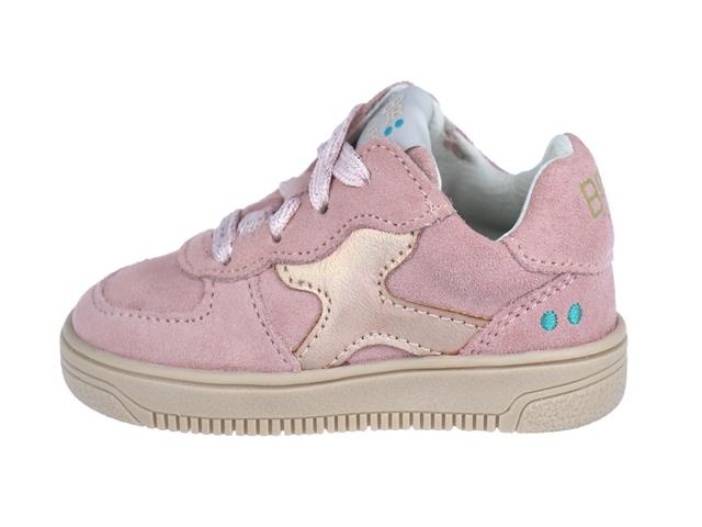 Bunnies JR hippe en trendy meisjes babyschoen. Deze sneaker van Bunnies JR heeft als modelnaam Monica (art. nr. 225255-470) en is perfect voor kindjes die hun eerste stapjes zelfstandig zetten. Deze schoen maakt deel uit van de populaire "Flex Collectie" speciaal ontwikkeld om jonge voetjes optimaal te ondersteunen tijdens het zelfstandig leren lopen. De zool biedt optimale ondersteuning en bewegingsvrijheid. De sneaker is gemaakt van suede in het roze en heeft een unieke uitstraling door de speelse detaillering op de zijkant. De voering is van leer met een uitneembaar voetbed.