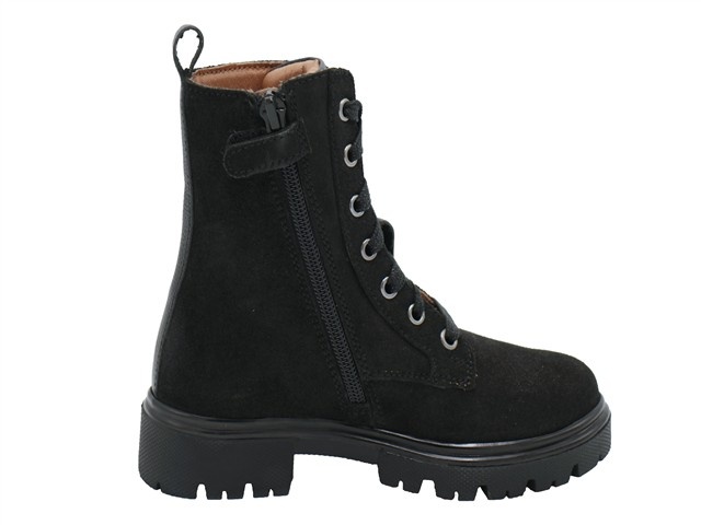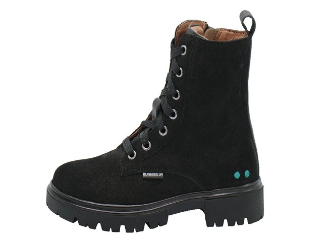 Bunnies Jr. hippe en trendy meisjes bikerboot. Deze halfhoge veterschoen van Bunnies Jr. heeft als modelnaam Saar Sterk en het artikelnummer is: 225884-989. De kleur is zwart in het leer met een lederen voering en een leder uitneembaar voetbed. Naast de vetersluiting heeft de schoen ook een ritssluiting aan de binnenzijde zodat je de schoenen gemakkelijk aan en uit kunt trekken.